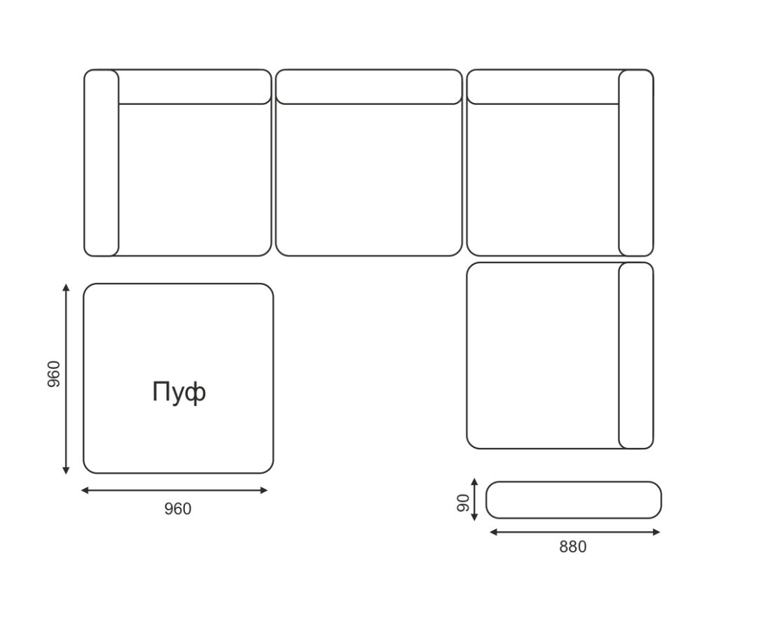 Размеры пуфв (ДхГхВ): 960х960х520 мм